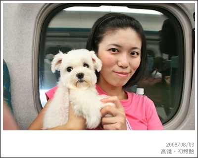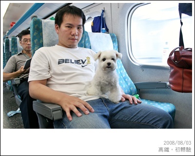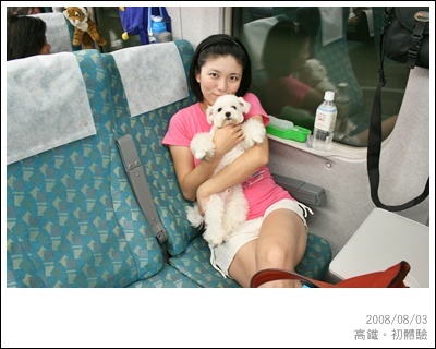 為了紀念第一次搭乘高鐵,上車後我偷偷讓bibi出來透透氣,但這是錯誤示範,大家還是照規定裝起來,以免弄髒座位,妨礙其他乘客的權益,若是因此被罰款也得不償失。
