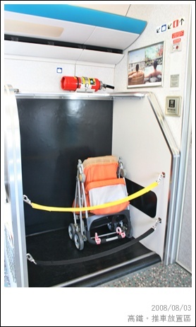 推車上車後,放置在專門的區域,每一節車廂最前頭都有這位子。