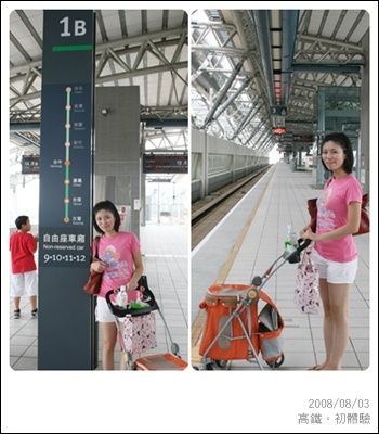 放在座位下方,我覺得這規定太不人性,但畢竟得考量其他乘客,所以還是按照規定來。不過我沒有運輸龍,加上天氣太熱,最後決定推推車,推車進入高鐵站後,收起來折放,bibi則換以背包背著。