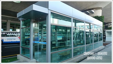 機場外還有等候巴士的休息室,裡面不僅有空調,還有液晶電視供旅客等候巴士時打發時間。