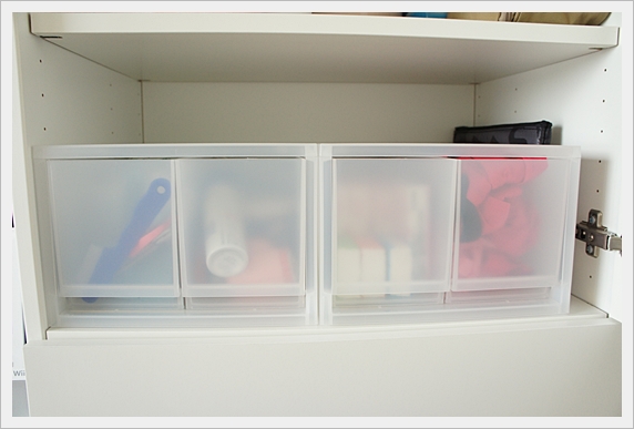 下一層也用了PP收納盒,無印良品有各式各樣不同尺寸樣式款式的收納盒,非常好用。