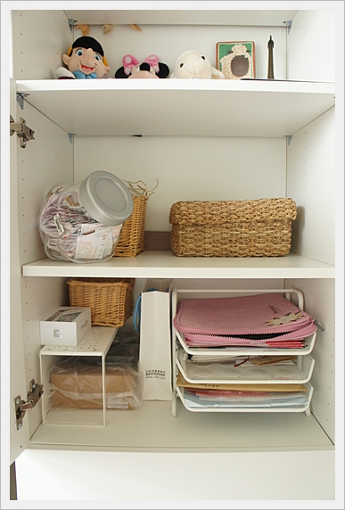 左邊的白櫃子打開,我在櫃子裡又放了檔案夾,一些重要文件或帳單就擺這,以免不小心被當廢紙丟了。