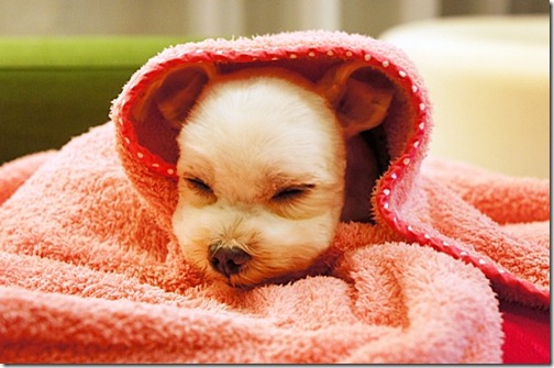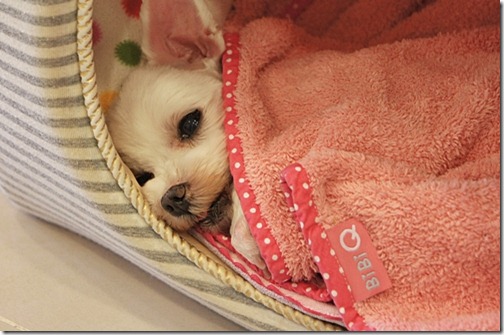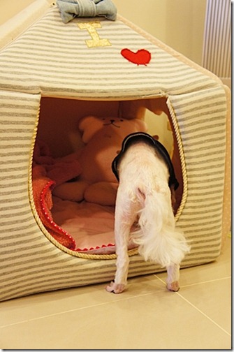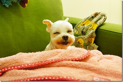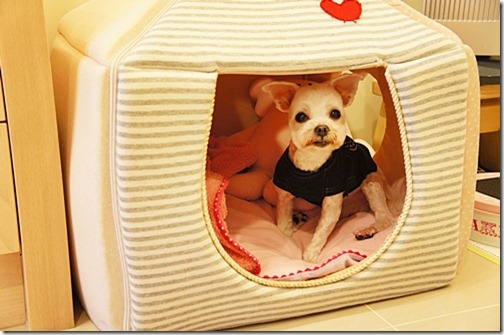 bi剪毛就跟洗車一樣,一剪就變天,幾乎每次剪毛都遇上寒流,昨天還好熱,今天馬上冷氣團報到,光著身子好冷,一吃飽就躲進他的房間。