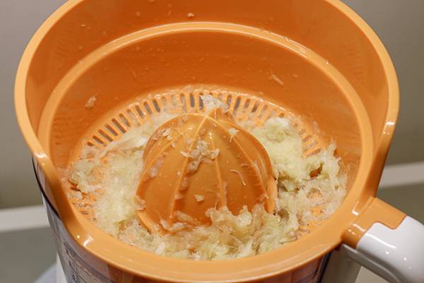 從第一步榨檸檬汁開始,將料理機接上榨汁器,一口氣把買回來的檸檬全部榨乾裝瓶保存在冰箱,料理、或是加蜂蜜水,隨時有檸檬汁真的很方便。