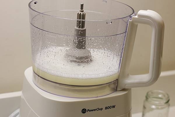 沒有料理機的時候,用徒手要打到乳化真的手很痠,速度又慢,藉助料理機不僅輕鬆不費力,更縮短製作的時間,我從丟進食材到打到乳化,大概也只有一分鐘的時間。