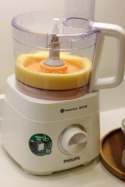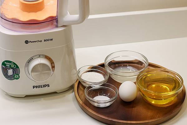 在沒有使用料理機時,用手持攪拌棒打發蛋與糖比較花時間也比較累,手必須要一直拿著攪拌器,用廚神料理機就超方便,把食材丟進去,轉動旋鈕,就能去處理其他的步驟,此外打發的時間也快速許多。