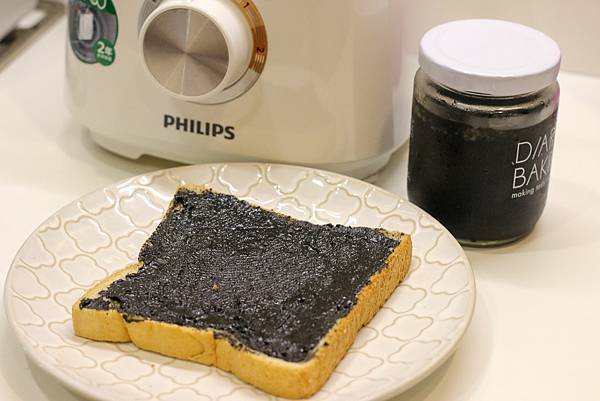 除了早餐漢堡,幫我調理備孕的中醫師建議我多吃深色食物,像是富含高鈣高鐵高蛋白的黑芝麻,營養價值非常高,所以我經常自製黑芝麻醬,抹在土司上做為簡單的早餐。