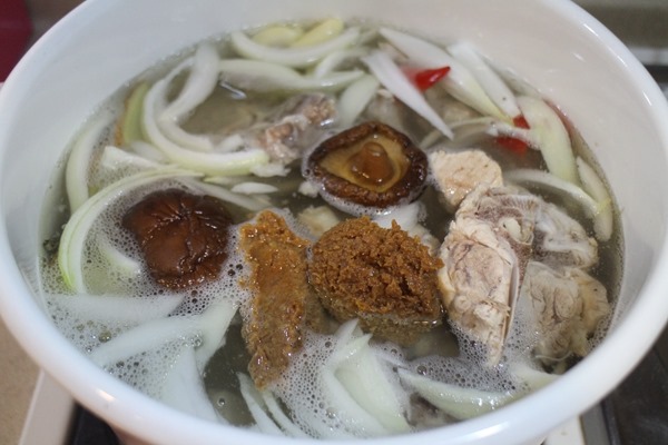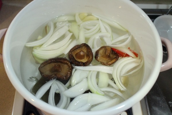 取一鍋乾淨水,我喜歡用昆布、魚乾、香菇等等來做高湯底,嫌麻煩或沒有這些材料的話,這個步驟可以省略用清水。