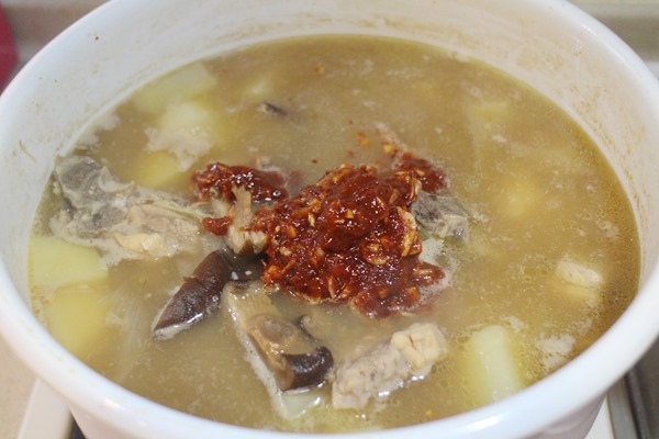 想吃到多一點肉的話,除了豬背骨可以再加其他部位的排骨肉,另外,原本我還準備了年糕,後來吃不下,喜歡的朋友也可以加年糕或冬粉。基本上我覺得和大醬湯概念一樣,就是一個火鍋,想加任何喜愛的東西都可以,只是既然是馬鈴薯排骨湯,主角一定要有馬鈴薯這樣。