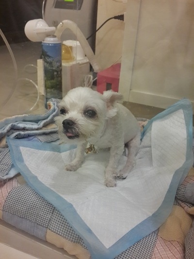 還好來到醫院,到醫院的好處是有專業醫師問診較安心,可以把利尿劑打入血液,或服用新的利尿劑藥粉,或讓醫師擠壓膀胱催尿。Bi真的很乖,醫生幫他做任何治療他都靜靜配合,撐著的時候也看得出來他很努力想要好起來。