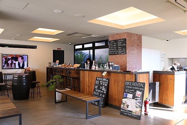 PIECE HOSTEL KYOTO的公共空間白天是咖啡廳、晚上是小酒吧,我滿喜歡這樣的感覺。