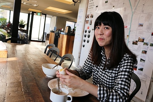 PIECE HOSTEL KYOTO早上會供應簡單的早餐,有米飯、有味噌湯、有麵包、沙拉、咖啡、茶,簡單歸簡單,但其實滿豐富,對窮人旅客來說,這是很滿足的一餐啊!
